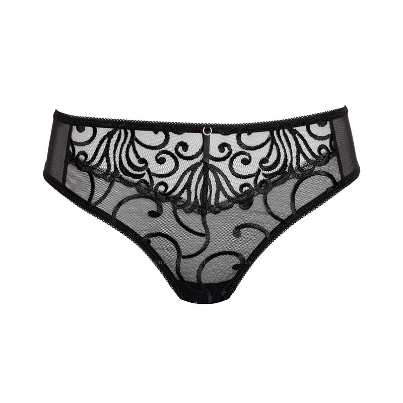 Cueca clássica elegante e sensual, que combina tule bordado na frente e tule elástico atrás. O algodão respirável na virilha garante o máximo de conforto.