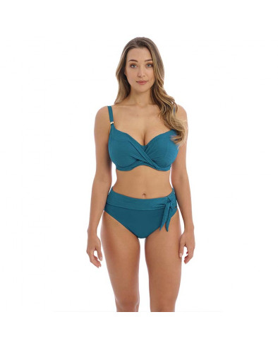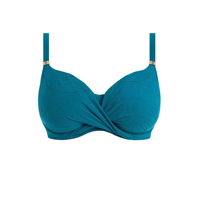 O bikini top Ottawa, feito de tecido italiano premium para uma sensação luxuosa, chega agora neste lindo tom azul petróleo. Este modelo full cup envolvente e de grande capacidade de suporte, foi projetado com um detalhe frontal torcido, para um acabamento lisonjeiro. Possui alças de ombro fixas totalmente ajustáveis e um detalhe dourado metálico nas alças que não aquece com o sol.