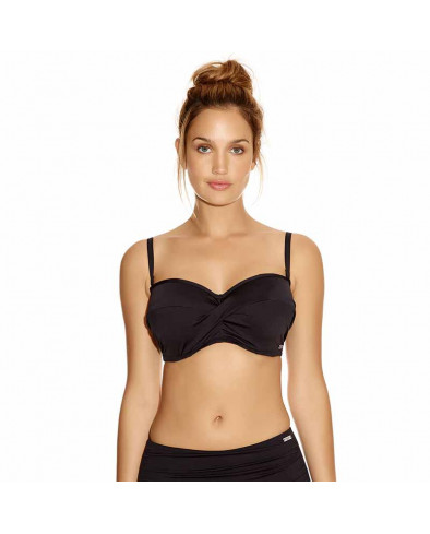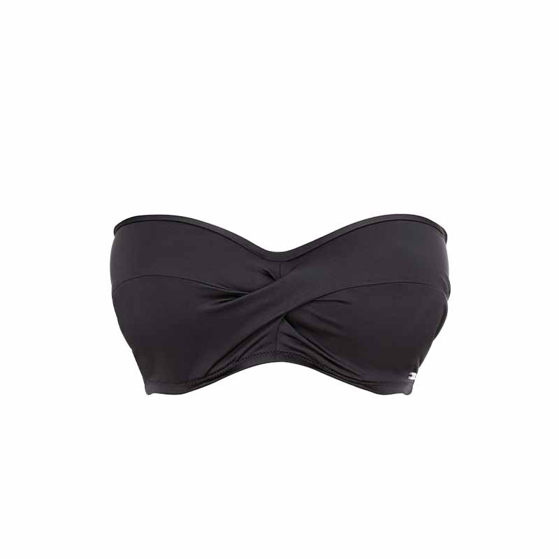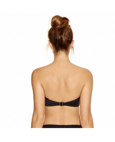 Modelo bandeau projetado com copas levemente acolchoadas e aros ocultos para um ajuste e suporte perfeito. Possui com um detalhe frontal cruzado lisonjeiro e de efeito adelgaçante. As alças destacáveis podem ser usadas sobre os ombros, cruzadas nas costas ou atadas ao pescoço.