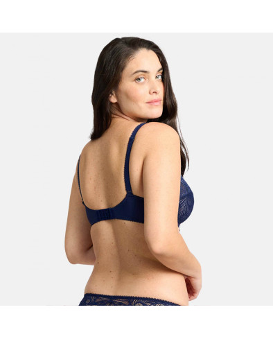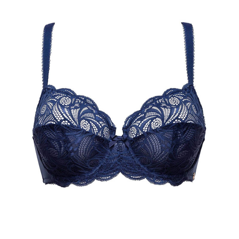 Modelo balcony com copa tripartida em elegante e macia renda em forma de espirais. As copas possuem forro em tule para maior conforto e resistência. Um indispensável para os seios médios, realçando-os e oferecendo forma e suporte.