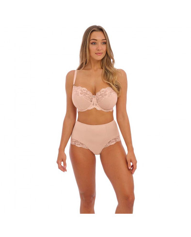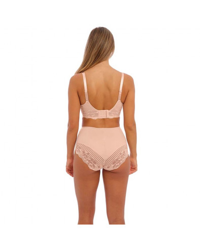Modelo balcony de copa tripartida com painel de suporte lateral, que oferece um enorme conforto, elevação e forma lisonjeira. A parte superior das copas é composta por renda elástica para um ajuste perfeito. Banda mais alta nas costas, composta por renda, para maior estabilidade e suporte.